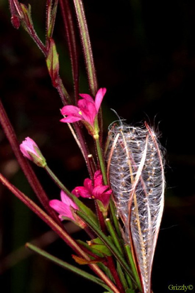 Fleurs : Epilobe hérissé ou Epilobe velu Fruits. Capsules minces,atteignant 6 cm de long,s'ouvrant pour lâcher des graines nombreuses chacune munie d'une aigrette soyeuse.