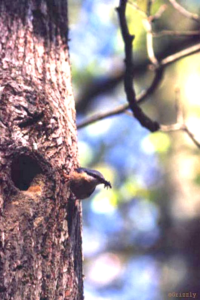 Sittelle torchepot avec insecte prêt à entrer nourrir ses petits.