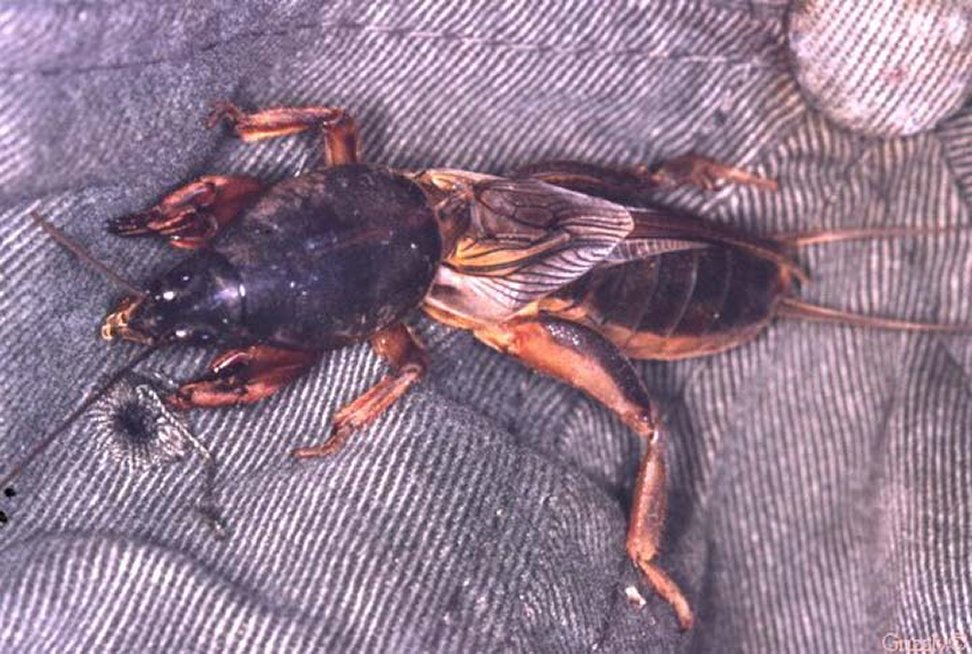 Insectes : Courtilière ou Grillon taupe, Les pattes antérieures de la Courtilière ont pris la forme de larges "pelles" lui permettant de creuser de longues galeries dans le sol;